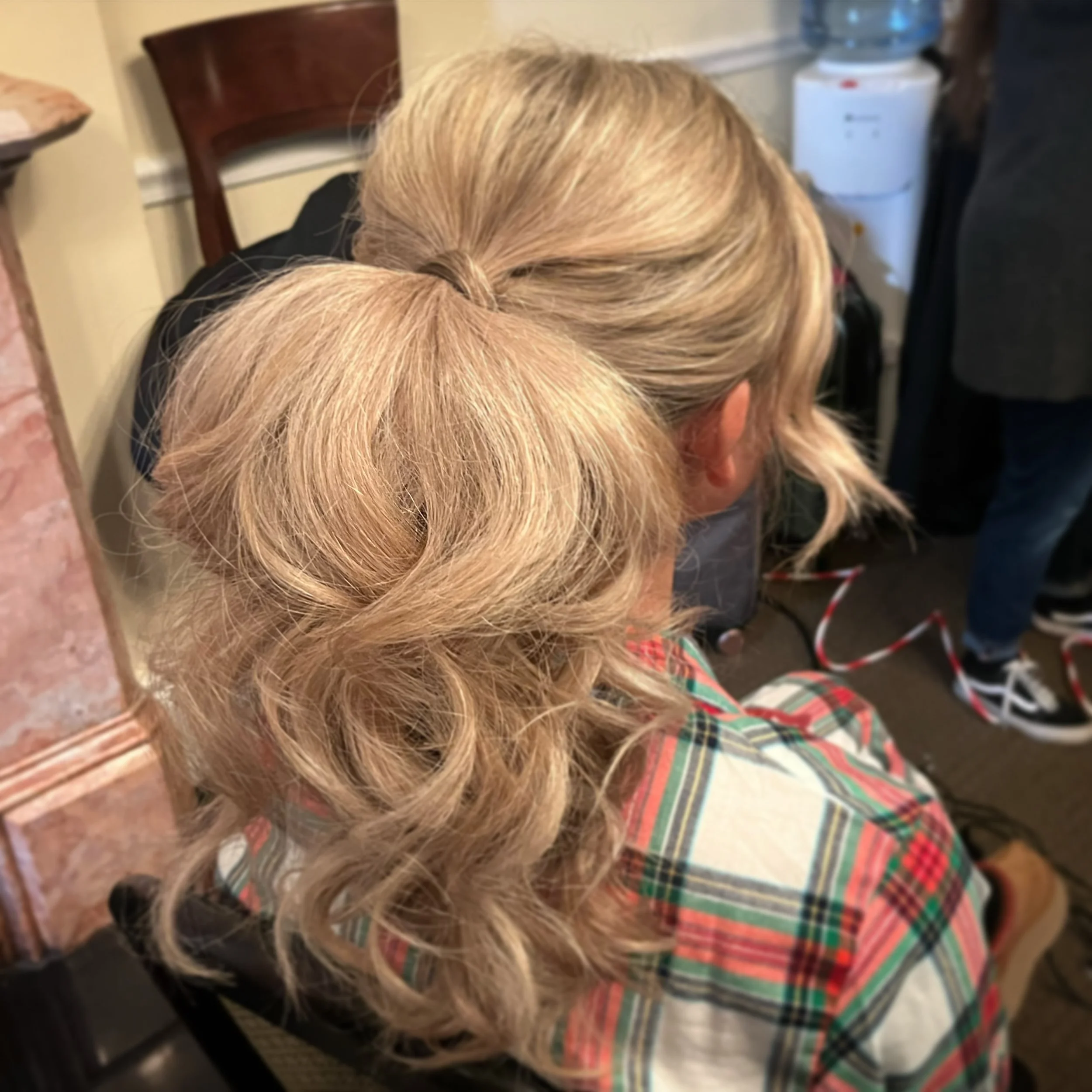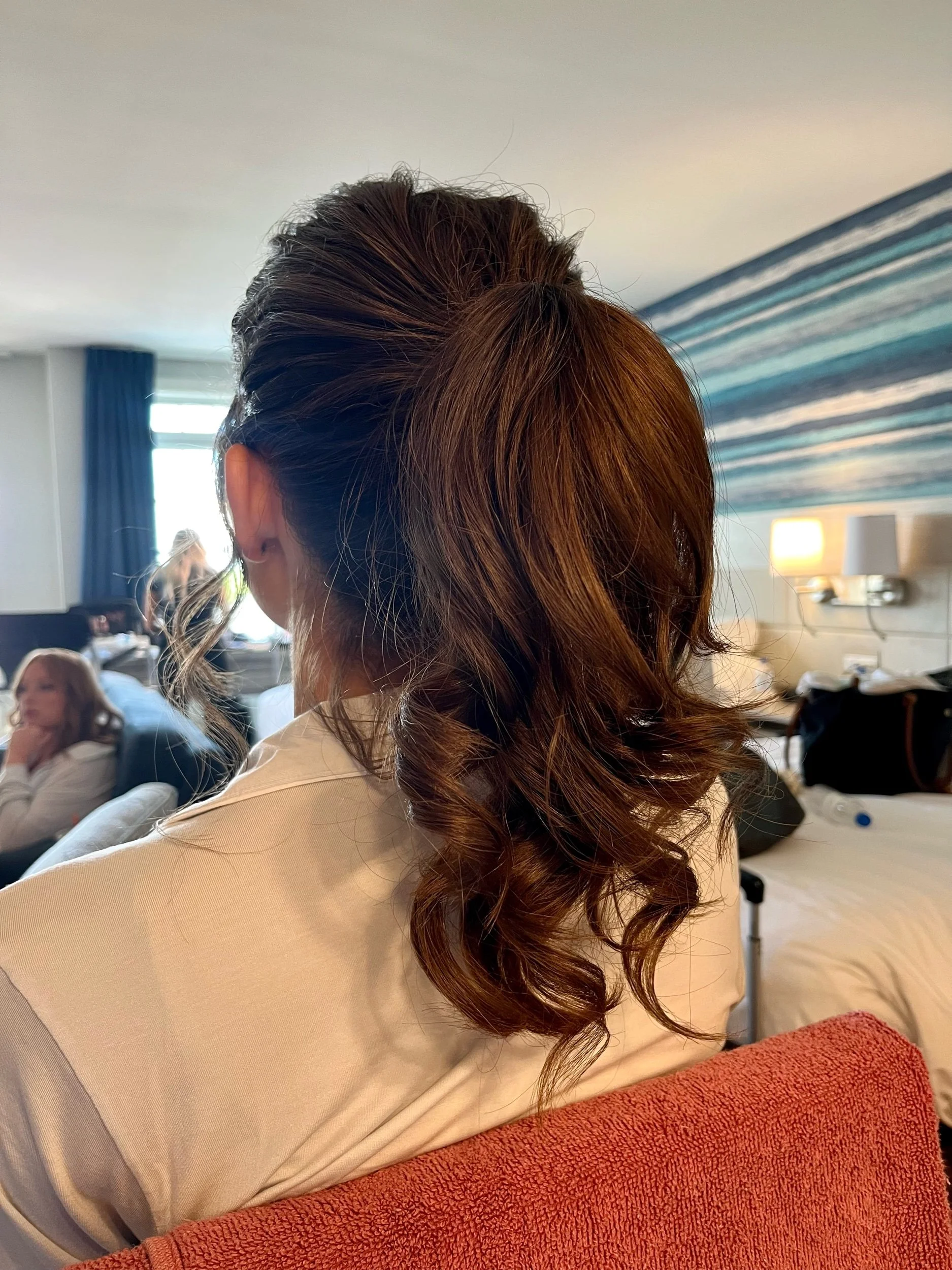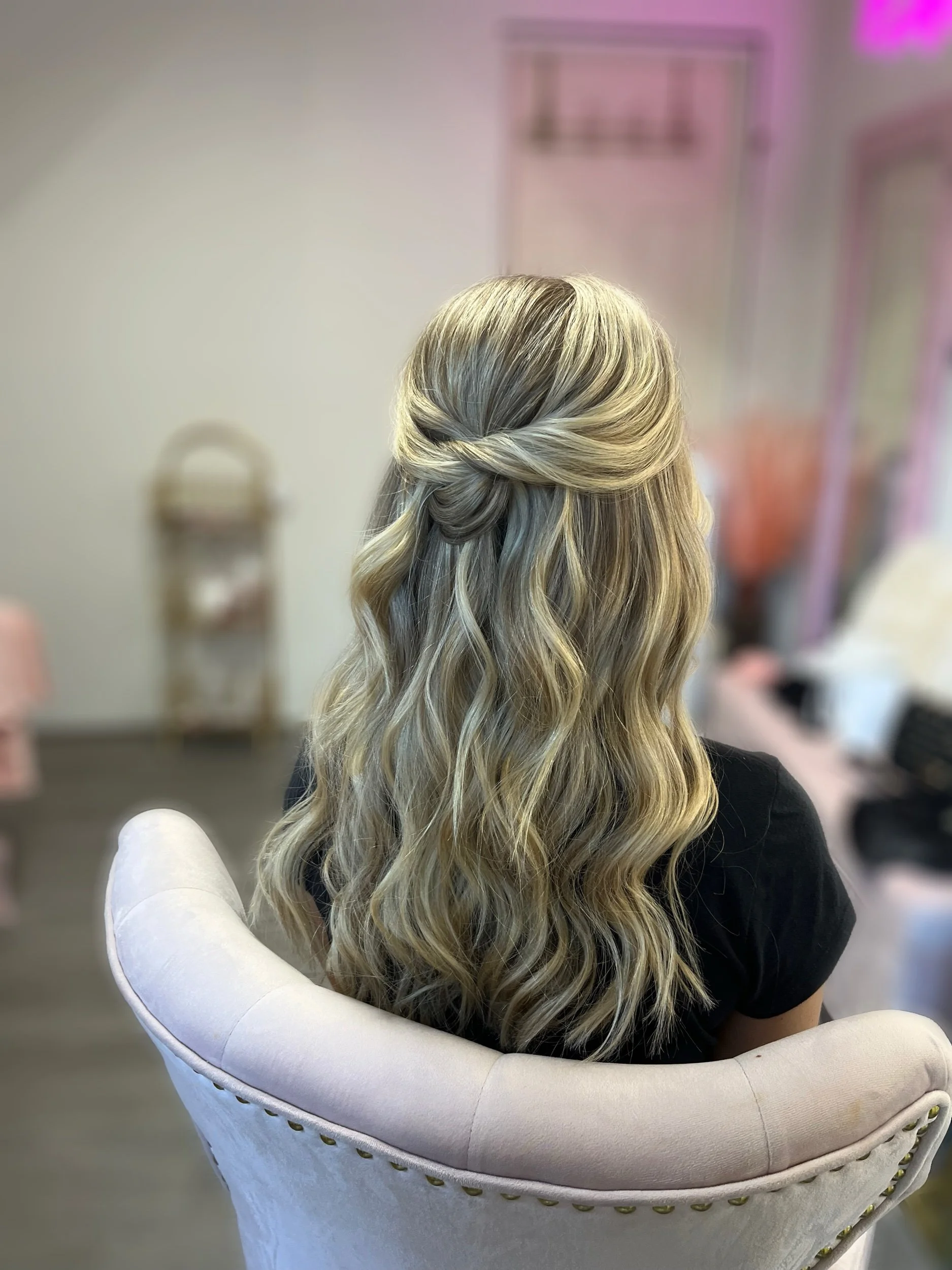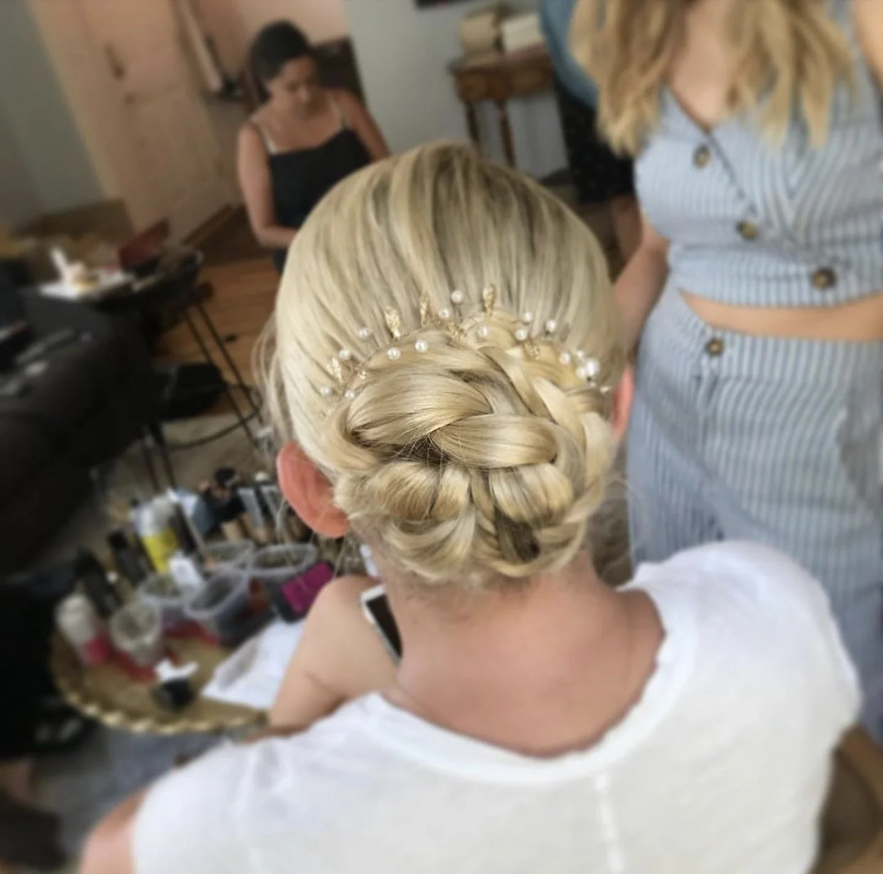 Tampa bridal party hair styling including half-updos and braids, on site services for St. Petersburg and Clearwater weddings