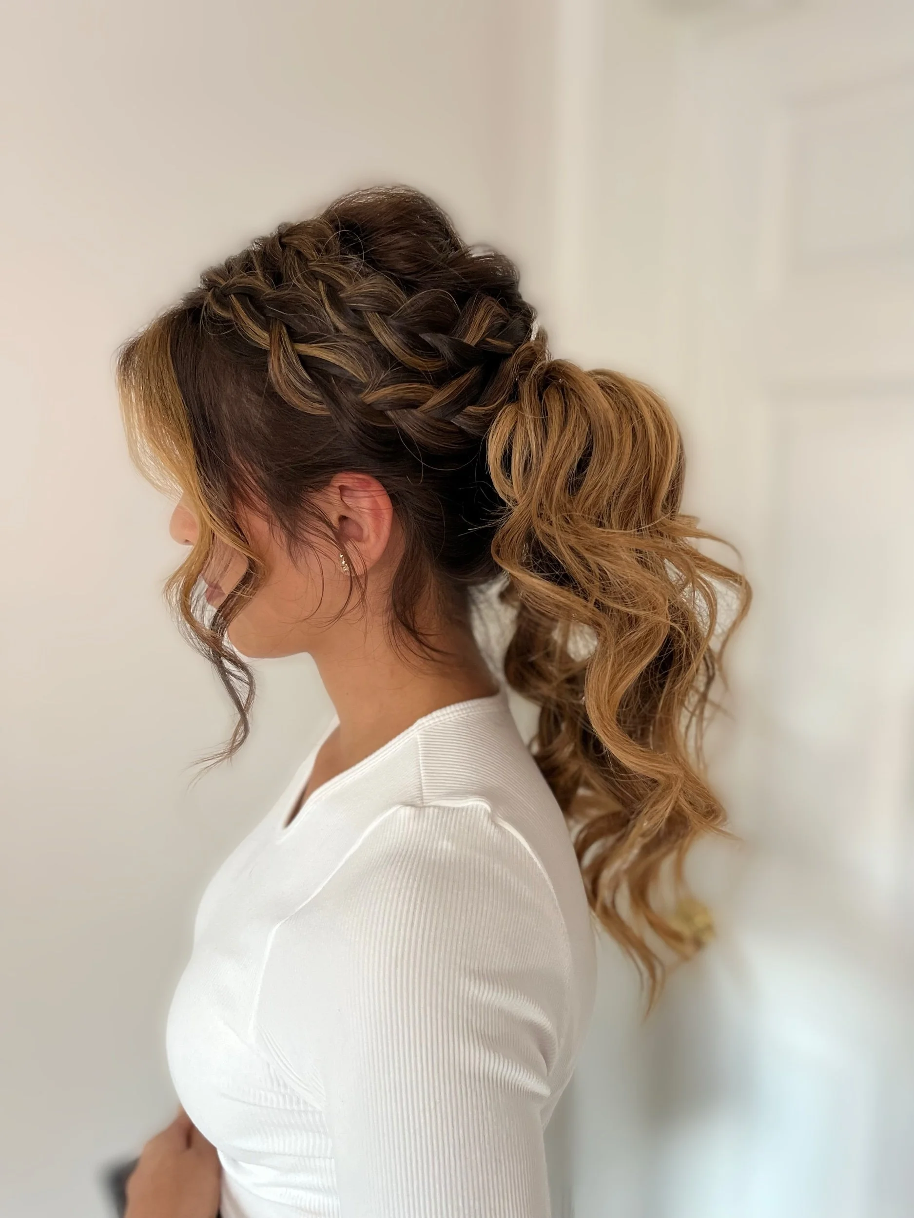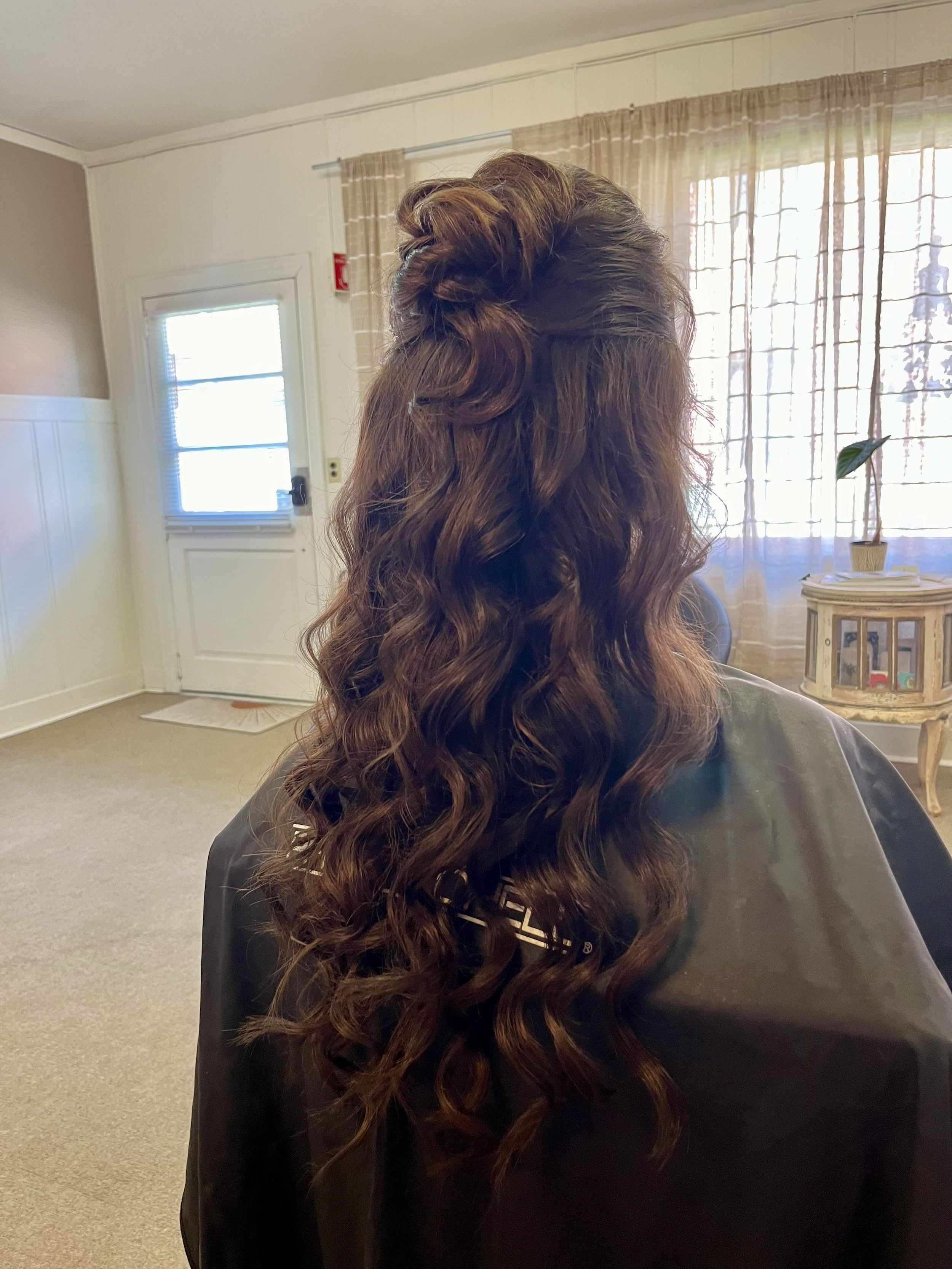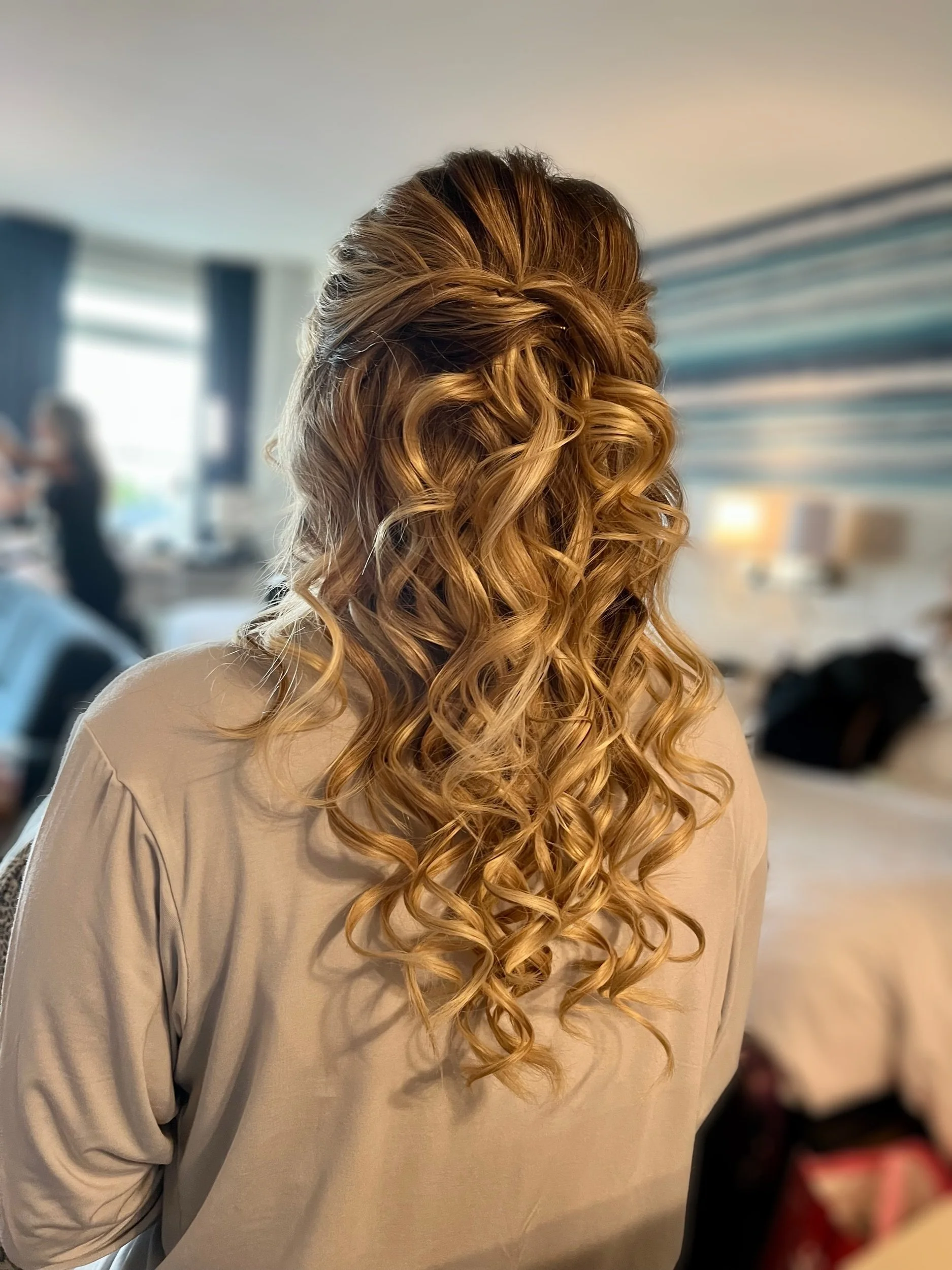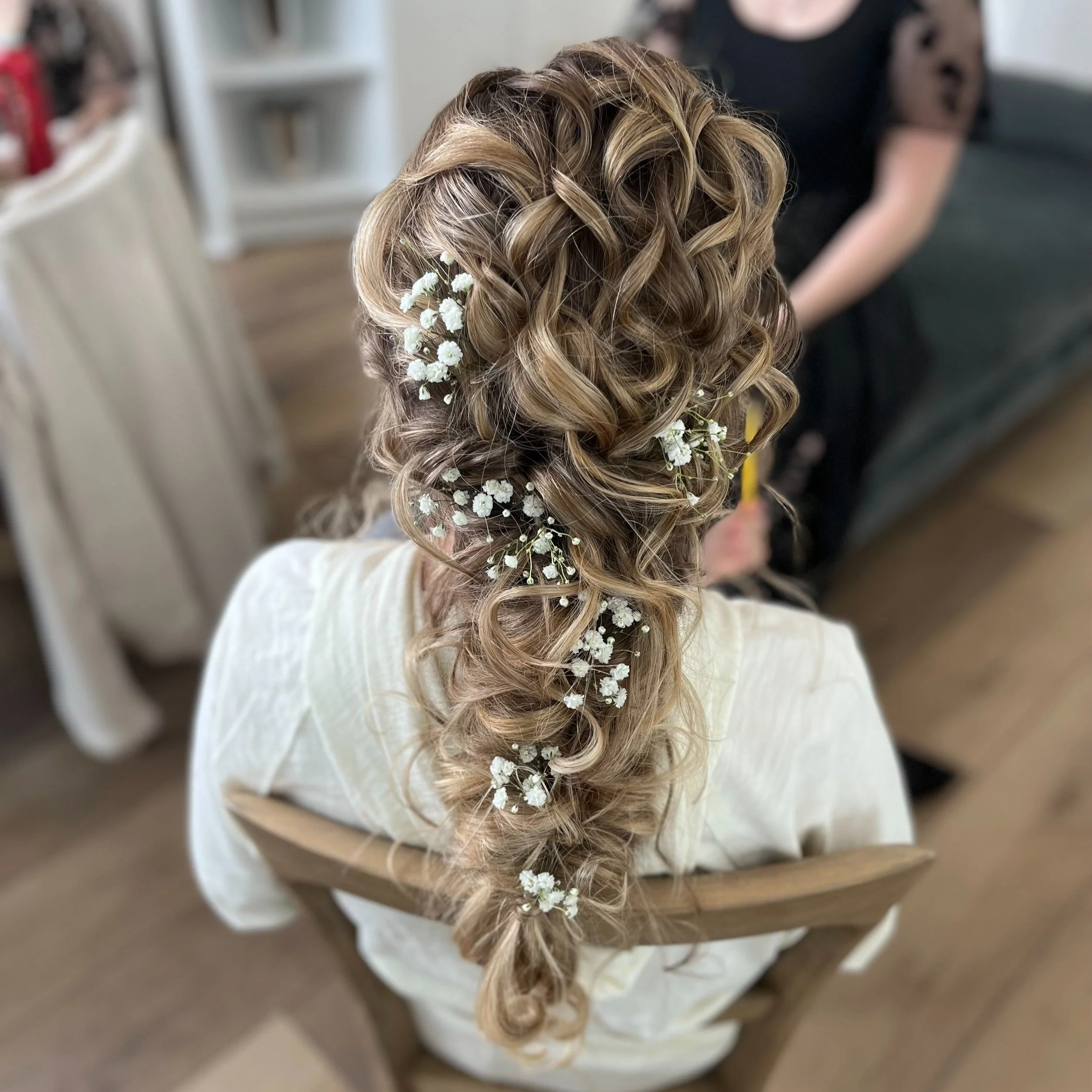 Tampa bridal party hair styling including half-updos and braids, on site services for St. Petersburg and Clearwater weddings