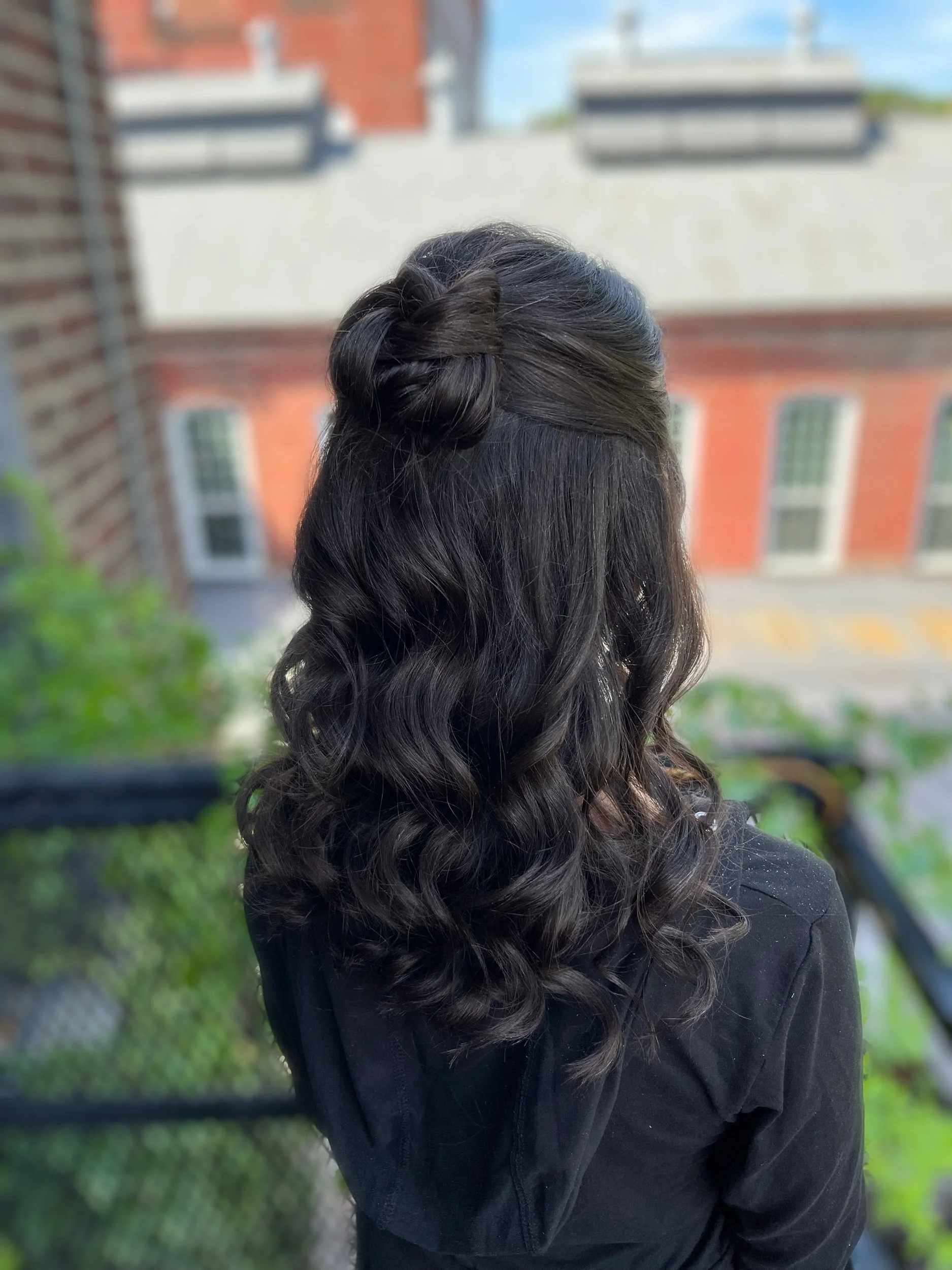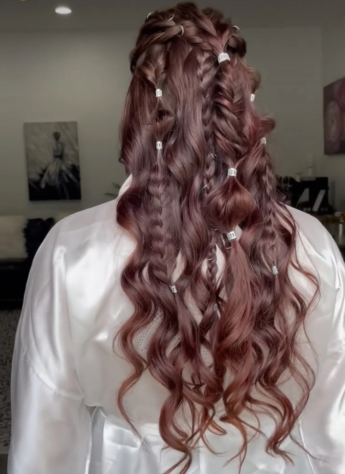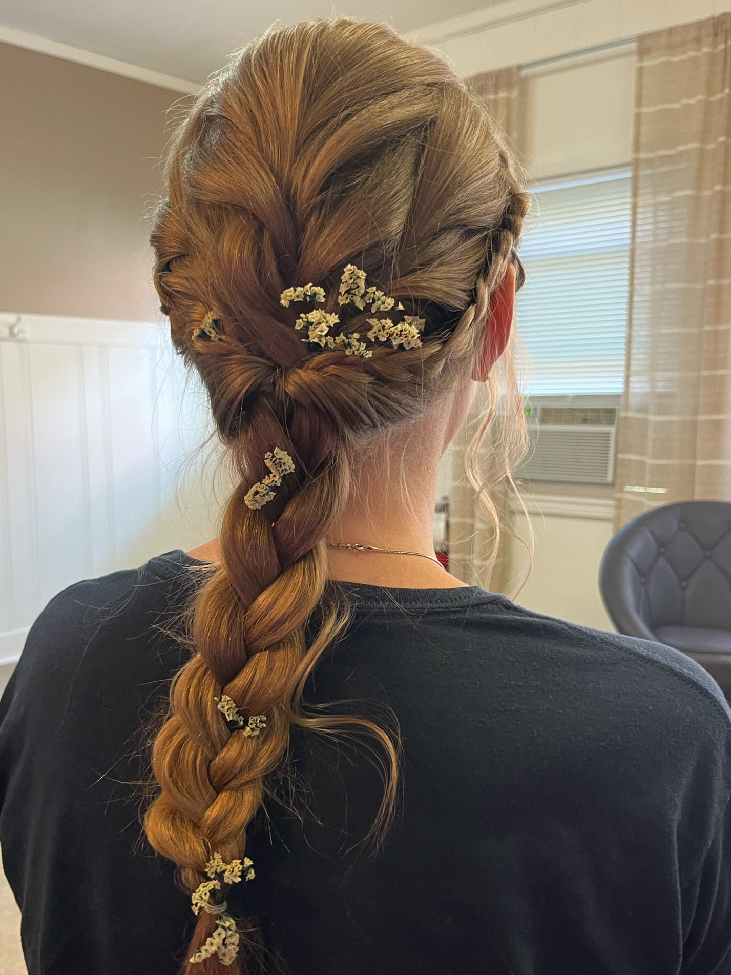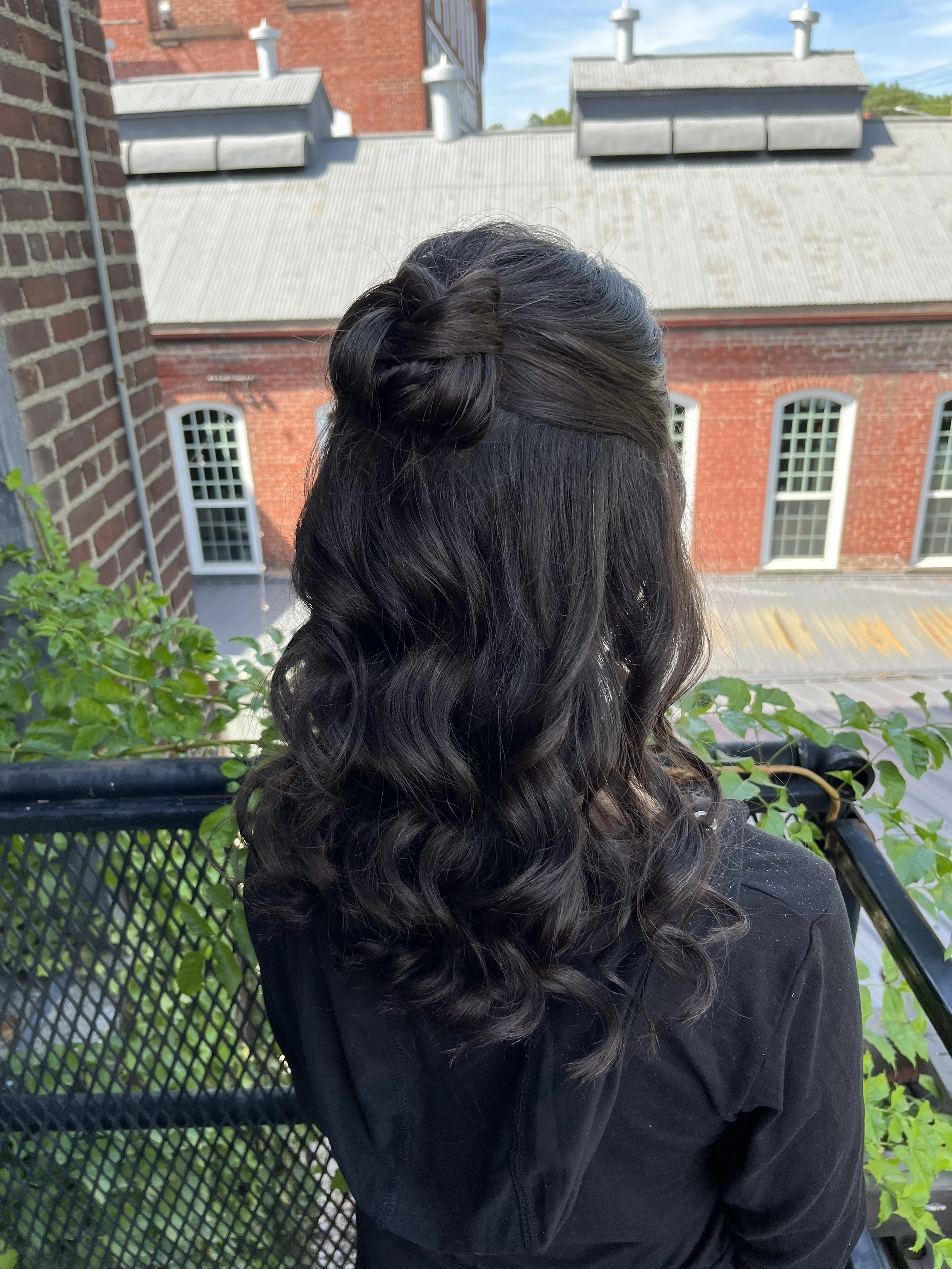 Tampa bridal party hair styling including half-updos and braids, on site services for St. Petersburg and Clearwater weddings