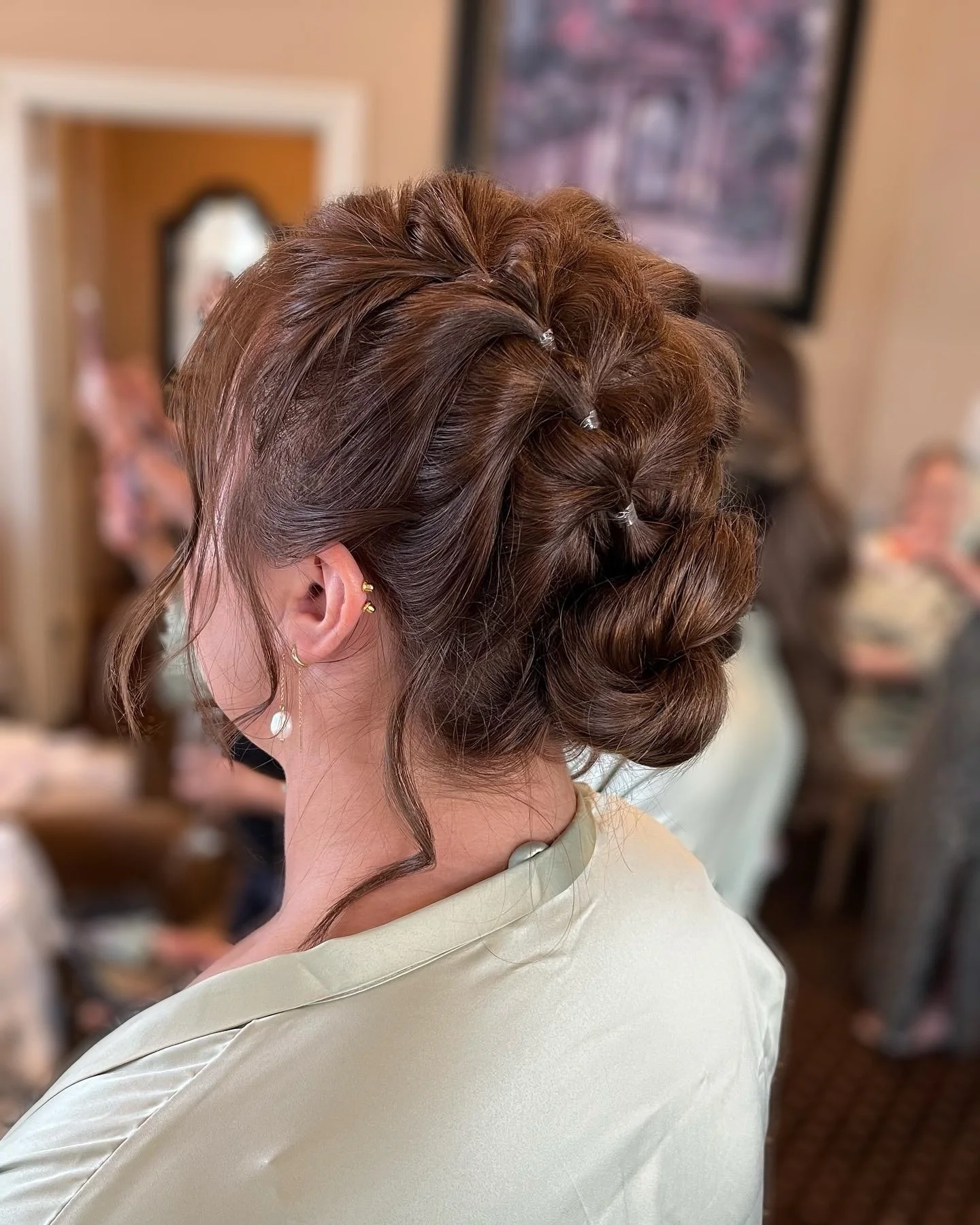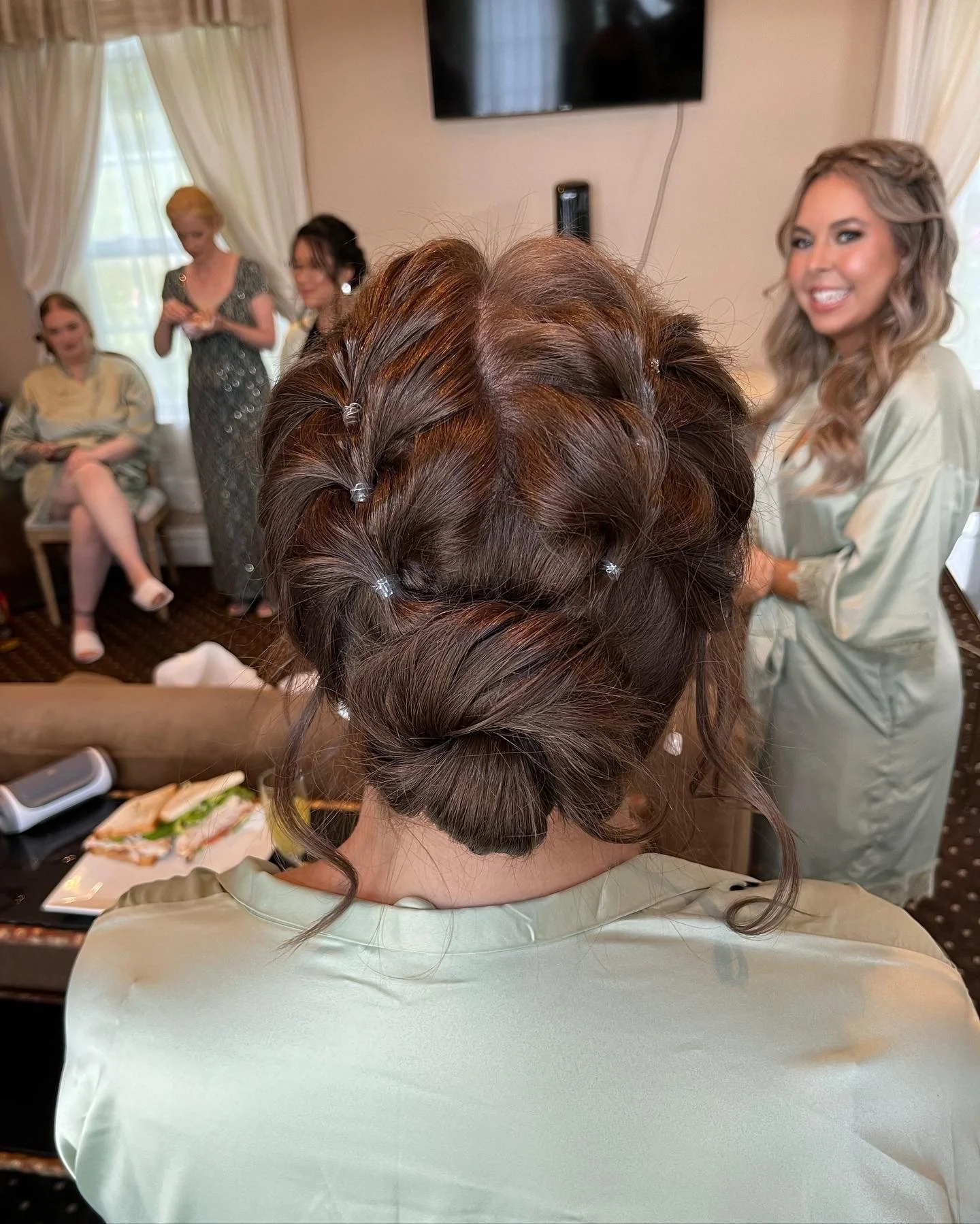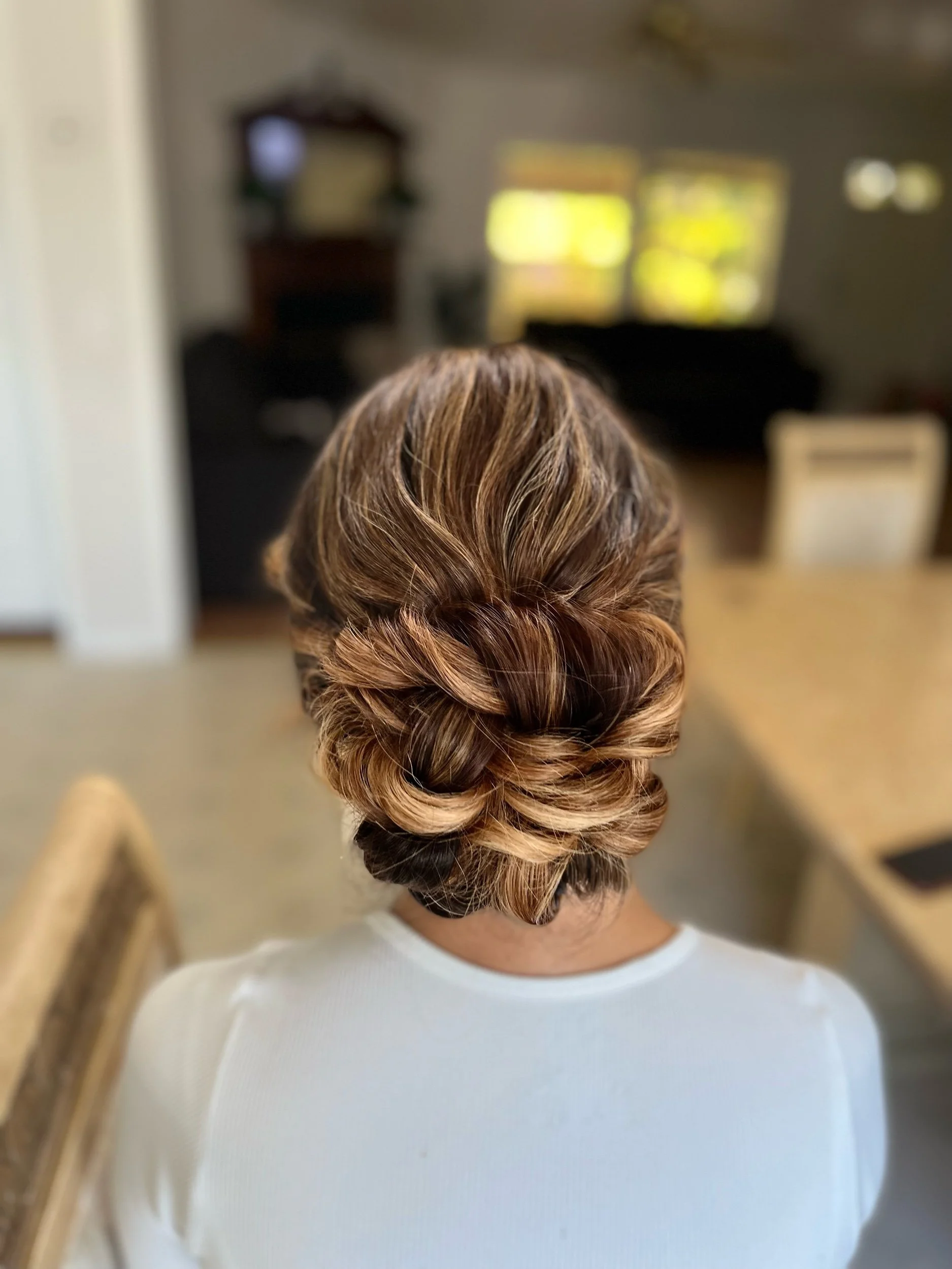 Trendy updo hairstyle for a bridesmaid for Tampa wedding by Becki With the Good Hair featuring humidity resistant texture in Florida weather