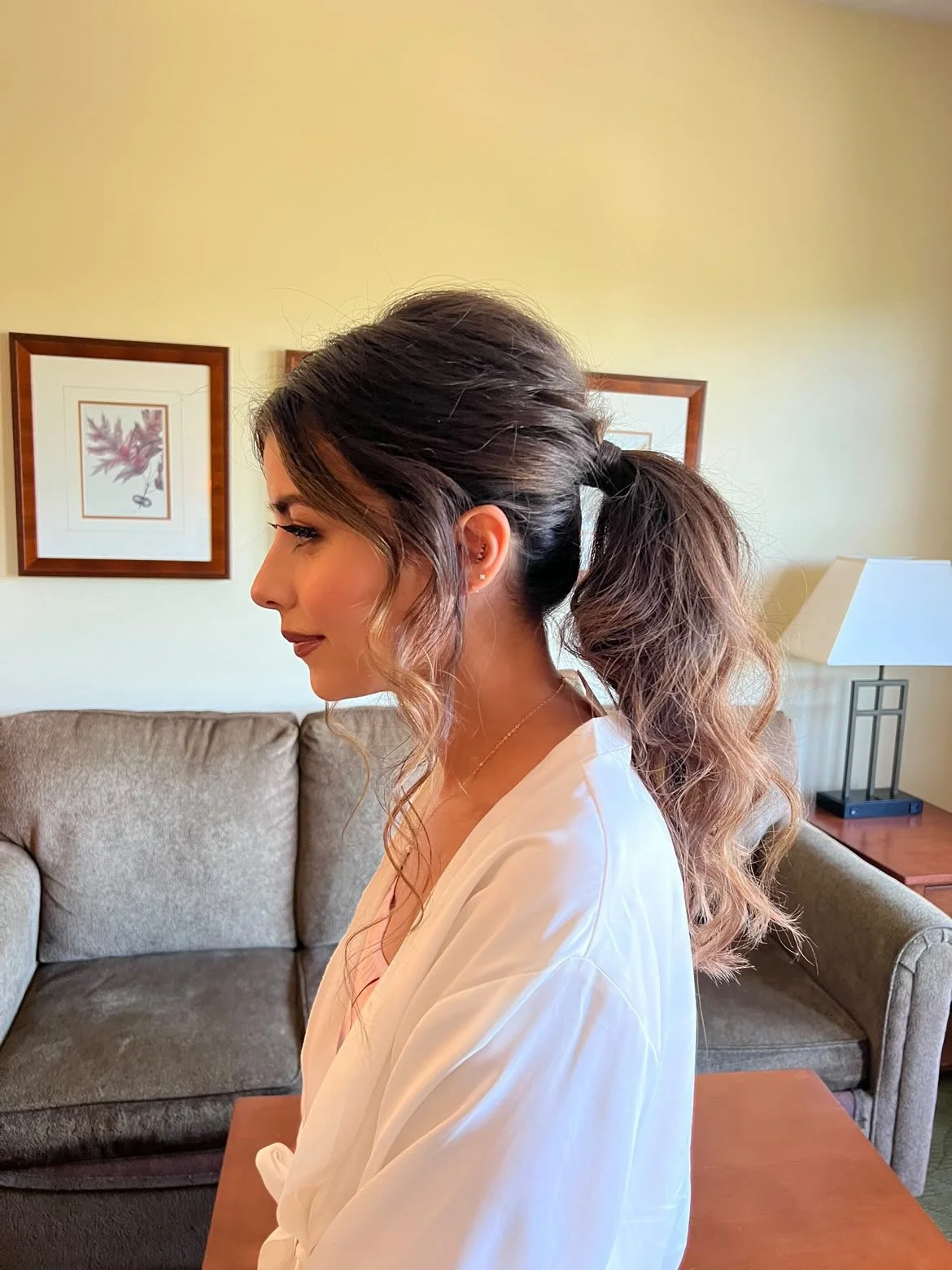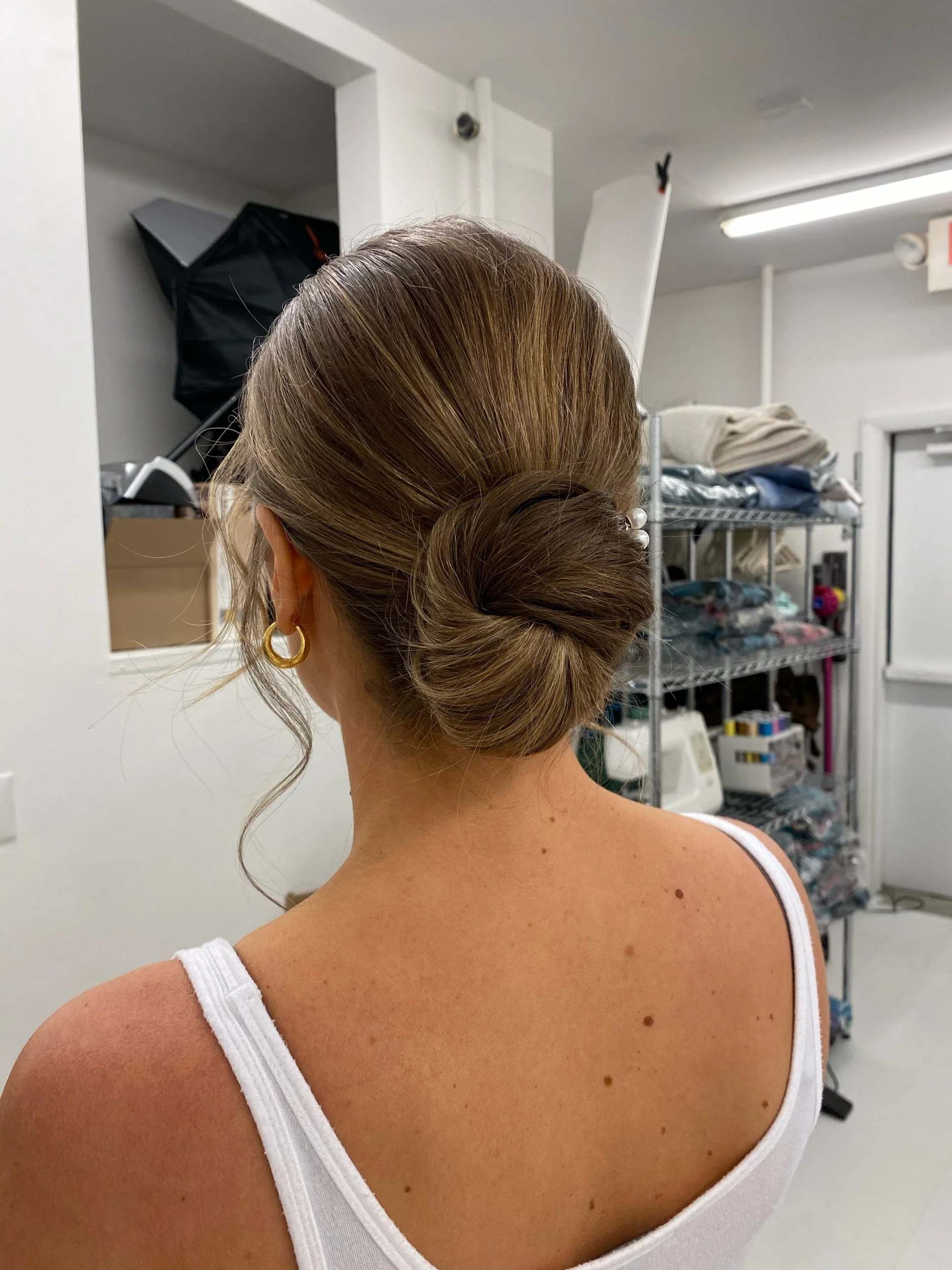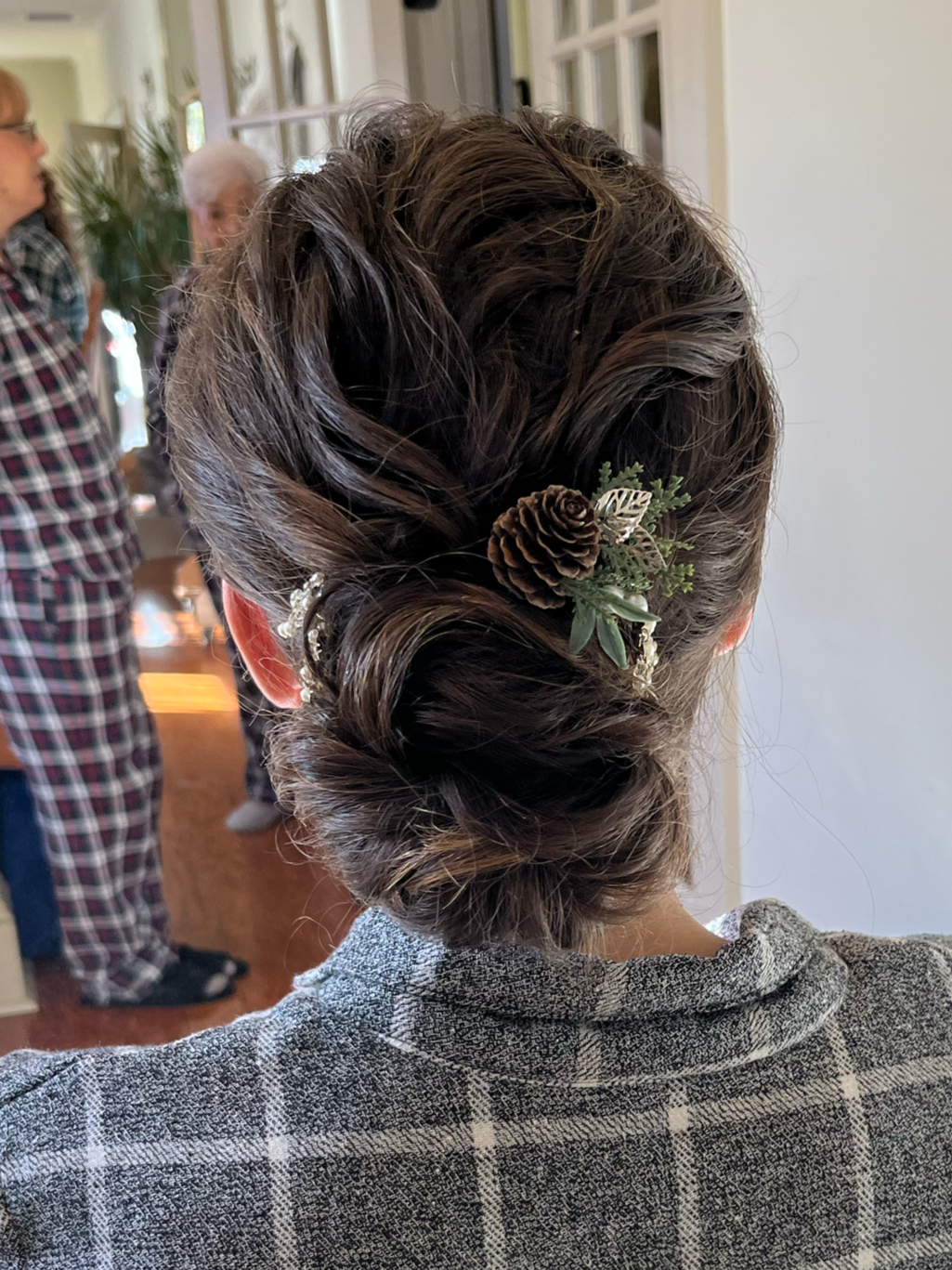 Trendy updo hairstyle for a bridesmaid for Tampa wedding by Becki With the Good Hair featuring humidity resistant texture in Florida weather