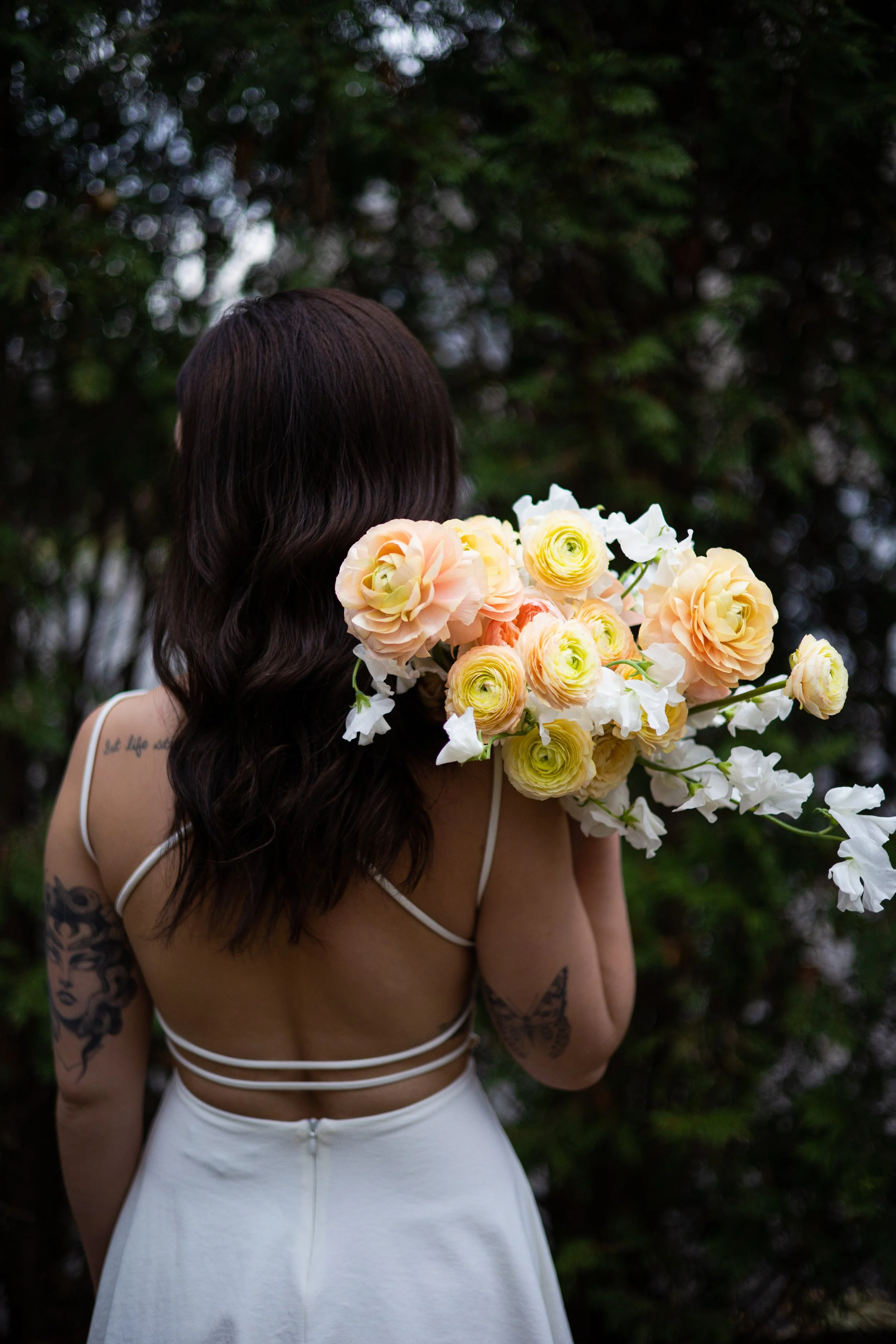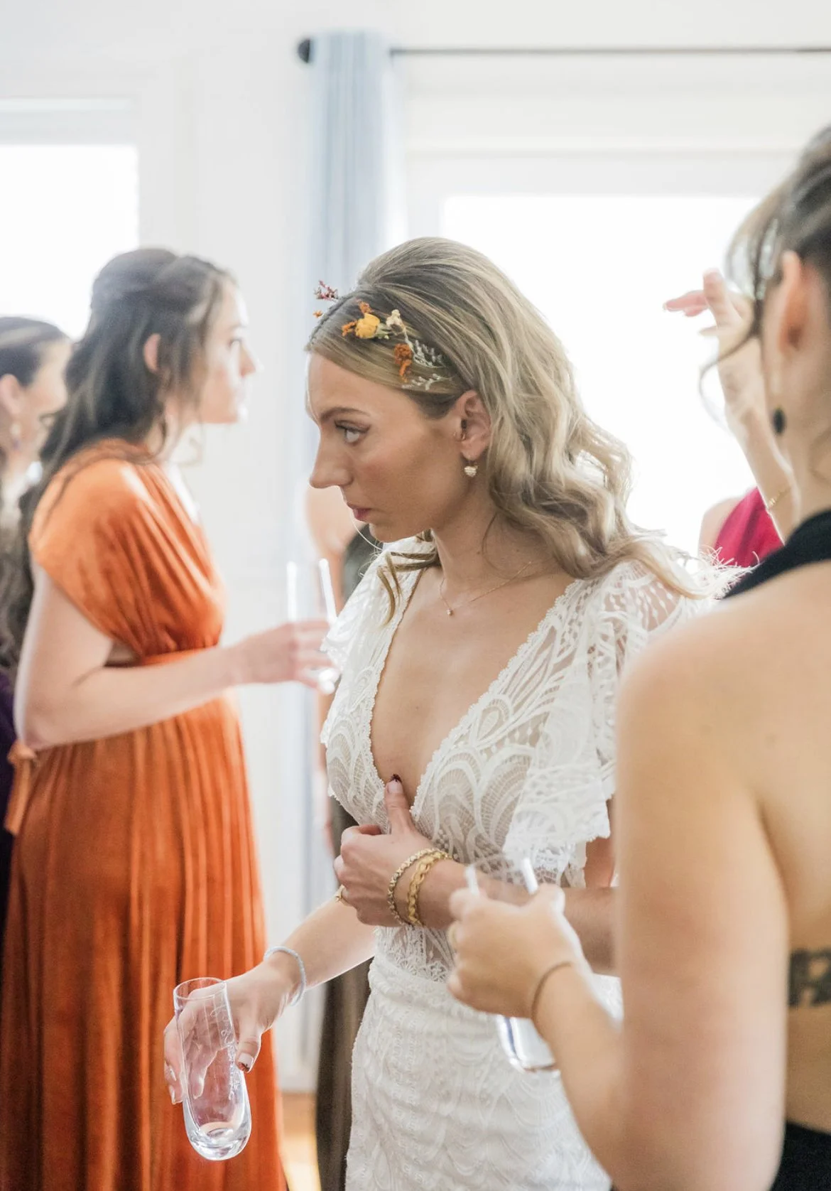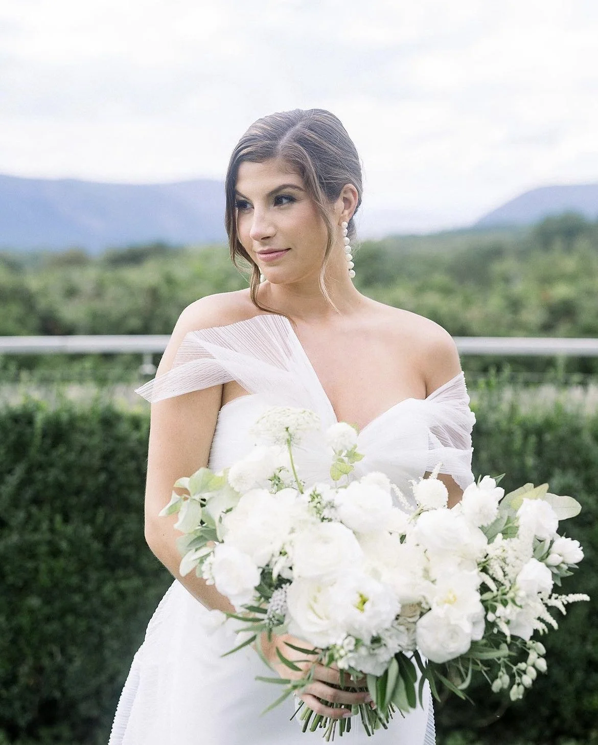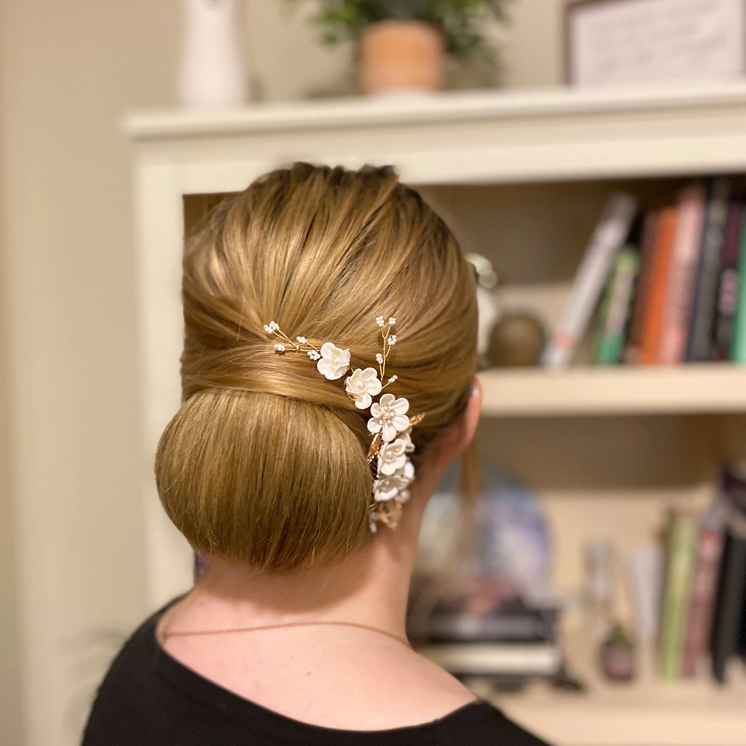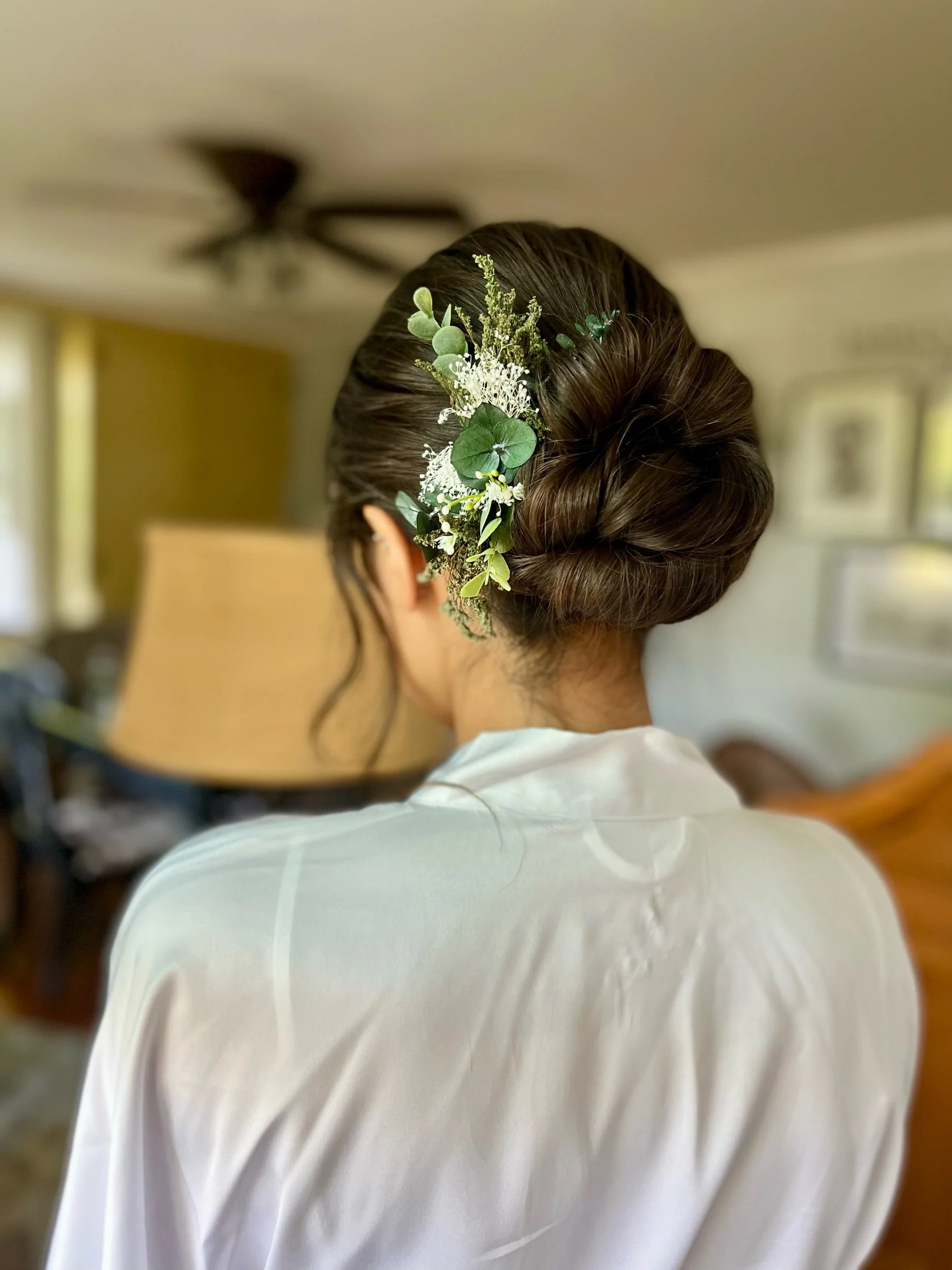 Timeless textured wedding hairstyle for a Florida bride featuring floral hair accessories