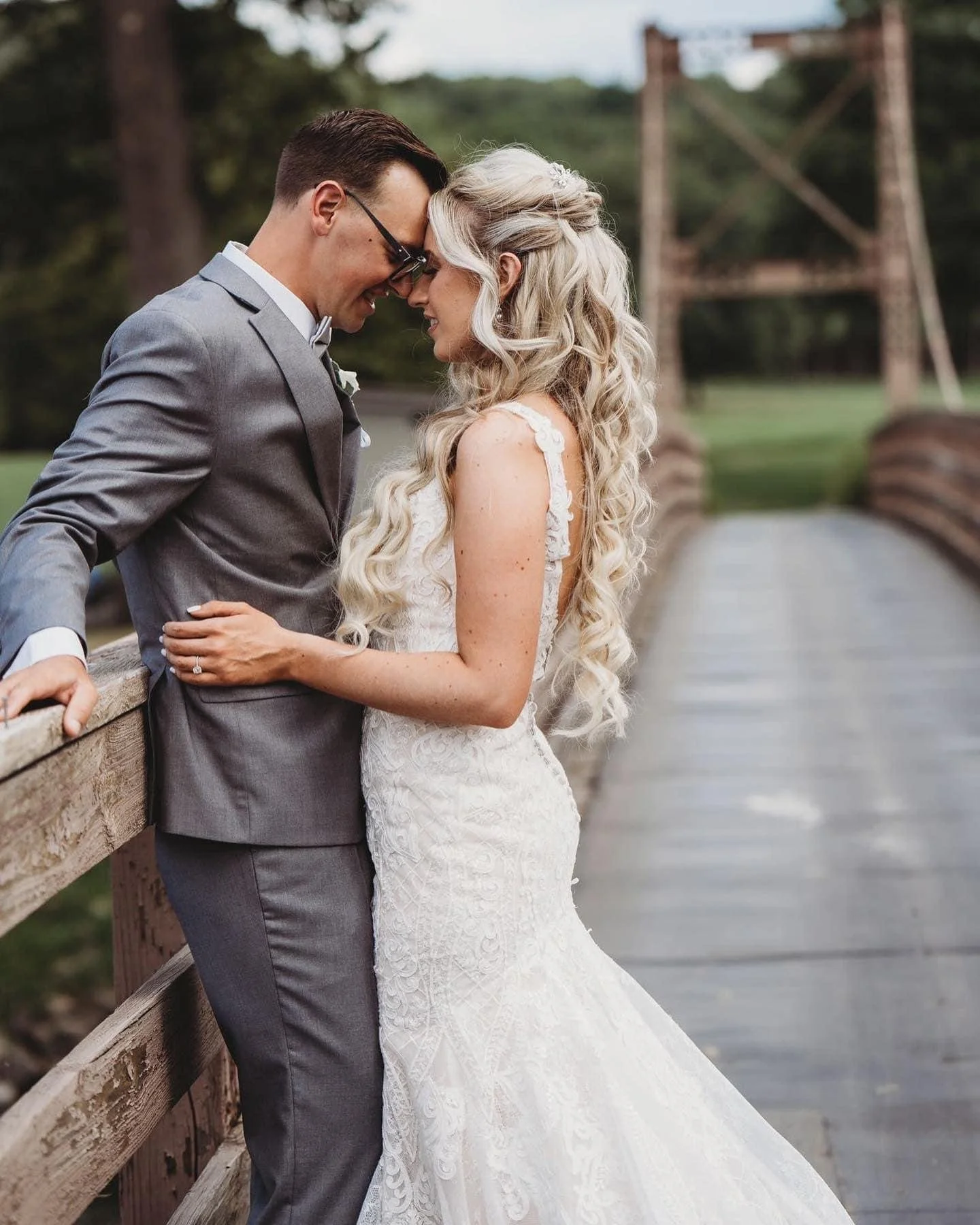 Boho half up wedding hairstyle with loose curls, perfect for Clearwater beach brides in the Tampa Bay Area
