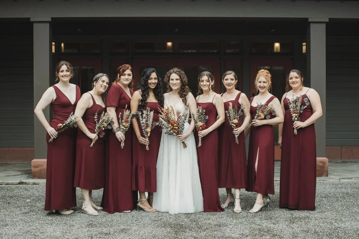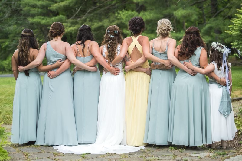 Tampa Bay Area bridal party with various hair styles including updos, half up styles, and beach waves, on site service for Tampa and Clearwater weddings by Becki With the Good Hair